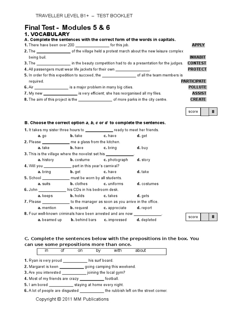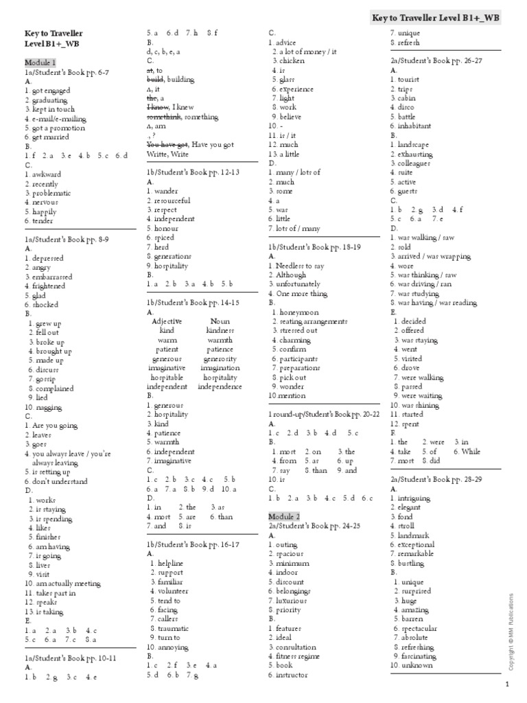 Key To Workbook B1 20134 1 Traveller Intermediate Key To Test
