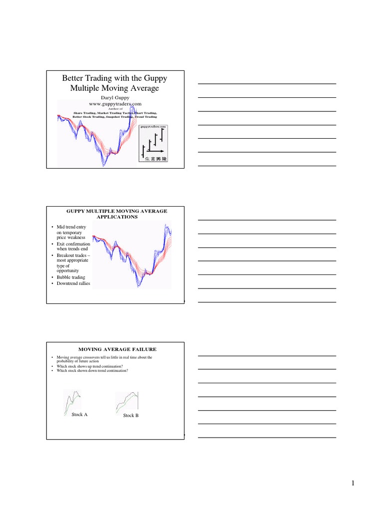 Guppy multiple moving average. St 6430 page 2 of 2 31 oct 2009 this article is free opportunities. In guppys book trend trading1 he says that we can get a significant trading edge by identifying the difference in the nature. He is an equity and derivatives trader and author of books including share trading market trading tactics snapshot trading better stock trading trend trading and the 36 strategies of the chinese for financial traders.